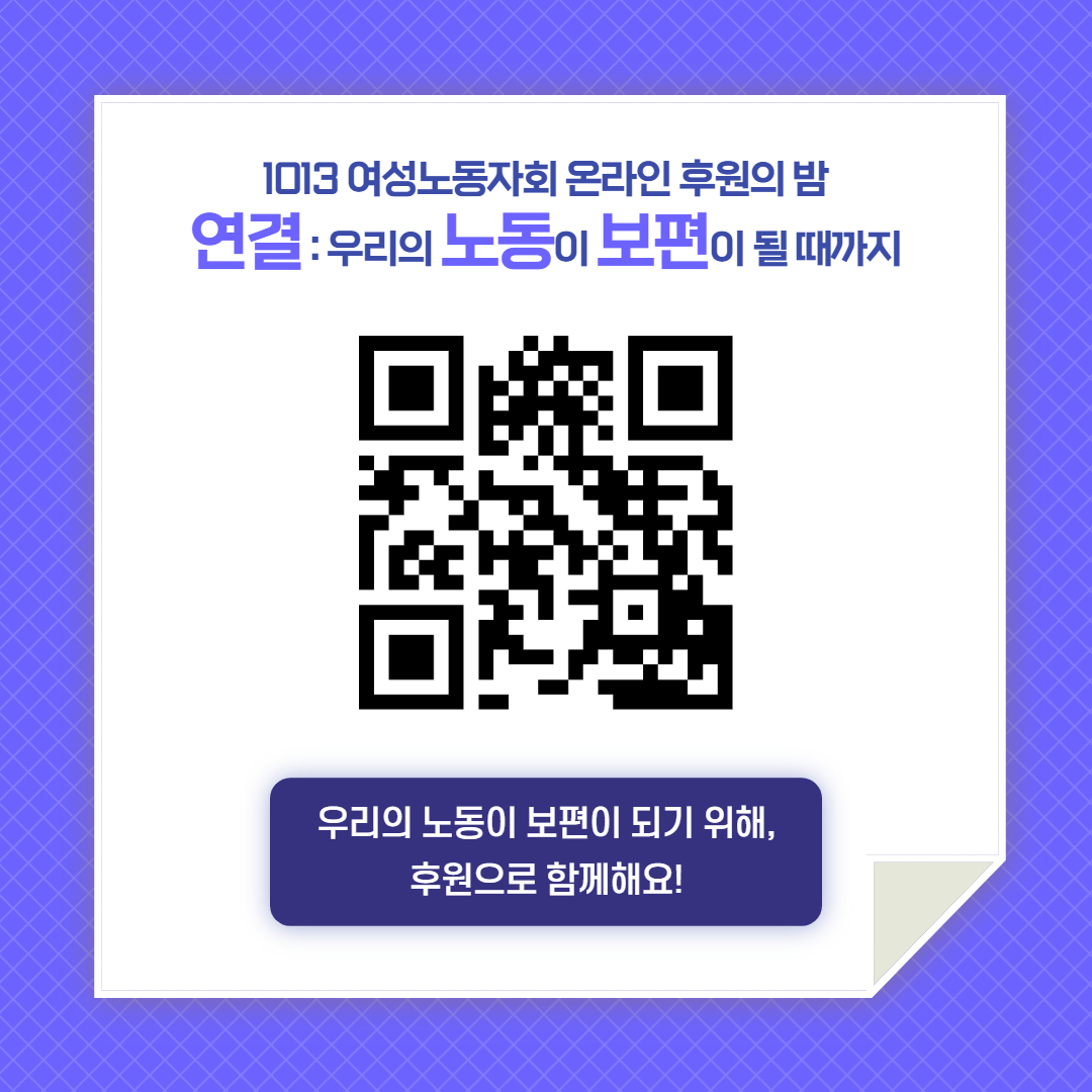 ❤️온라인 후원의밤은 10월 13일 수요일 오후 8시, 한국여성노동자회 유튜브에서 진행합니다!
