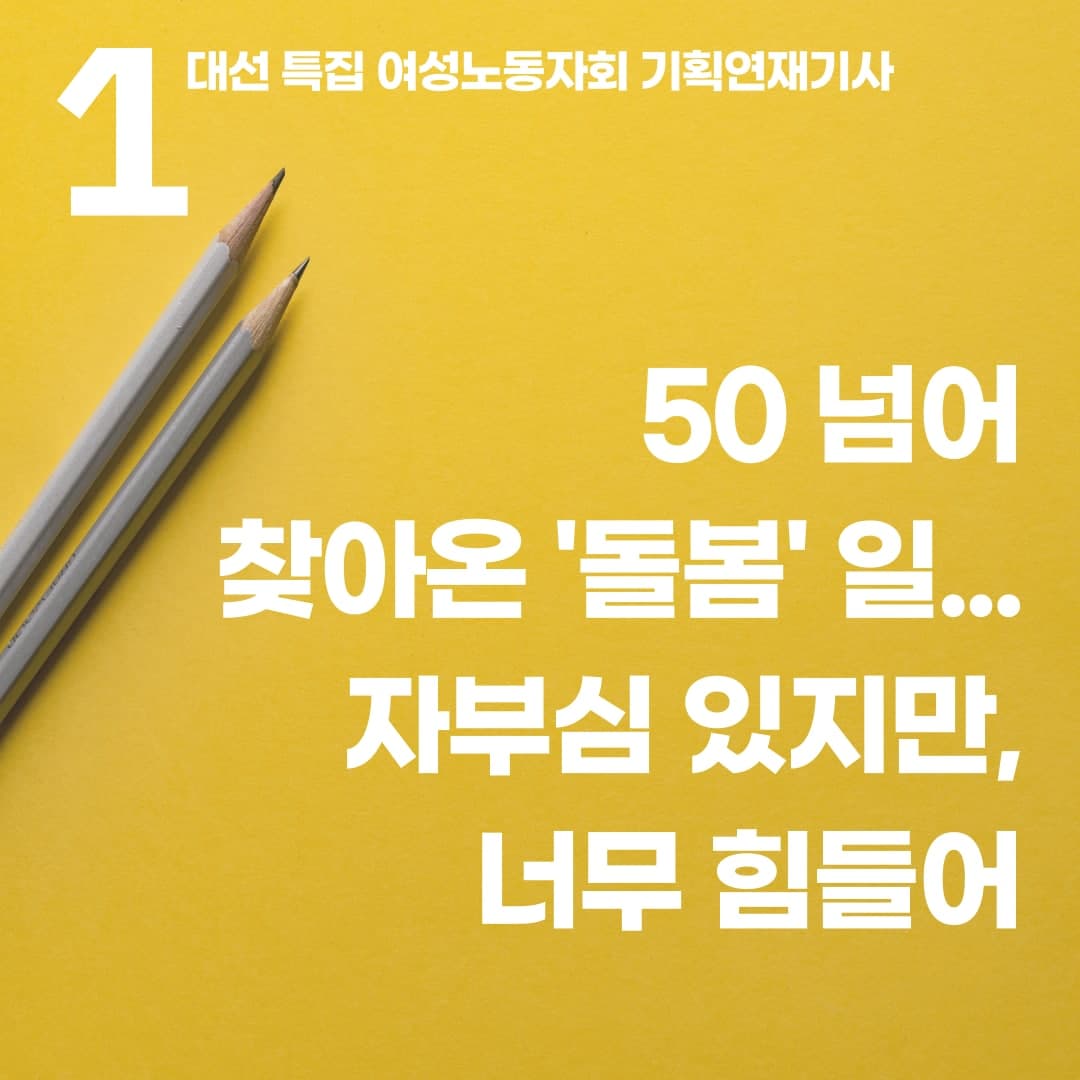 [성평등노동 없는 대선, 여성노동자가 말한다①] "50 넘어 찾아온 '돌봄' 일... 자부심 있지만, 너무 힘들어"