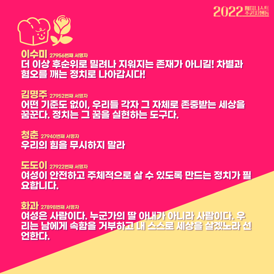 <2022 페미니스트 주권자행동> 온라인 10만 서명 운동 (0) | 2022.03.08 |