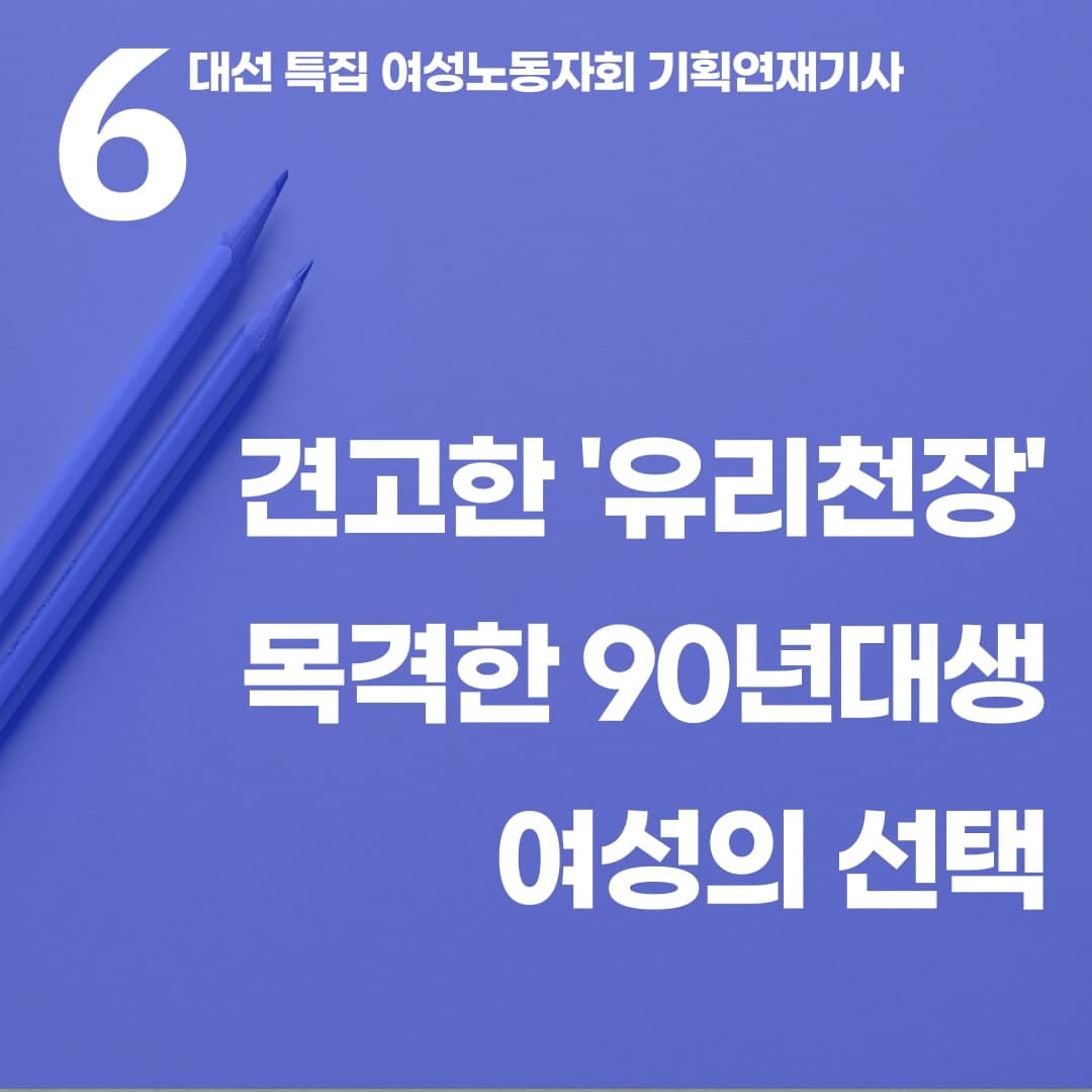 [성평등노동 없는 대선, 여성노동자가 말한다⑥] 성차별 없는 사회에서 살고 싶습니다 : 견고한 '유리천장' 목격한 90년대생 여성의 선택