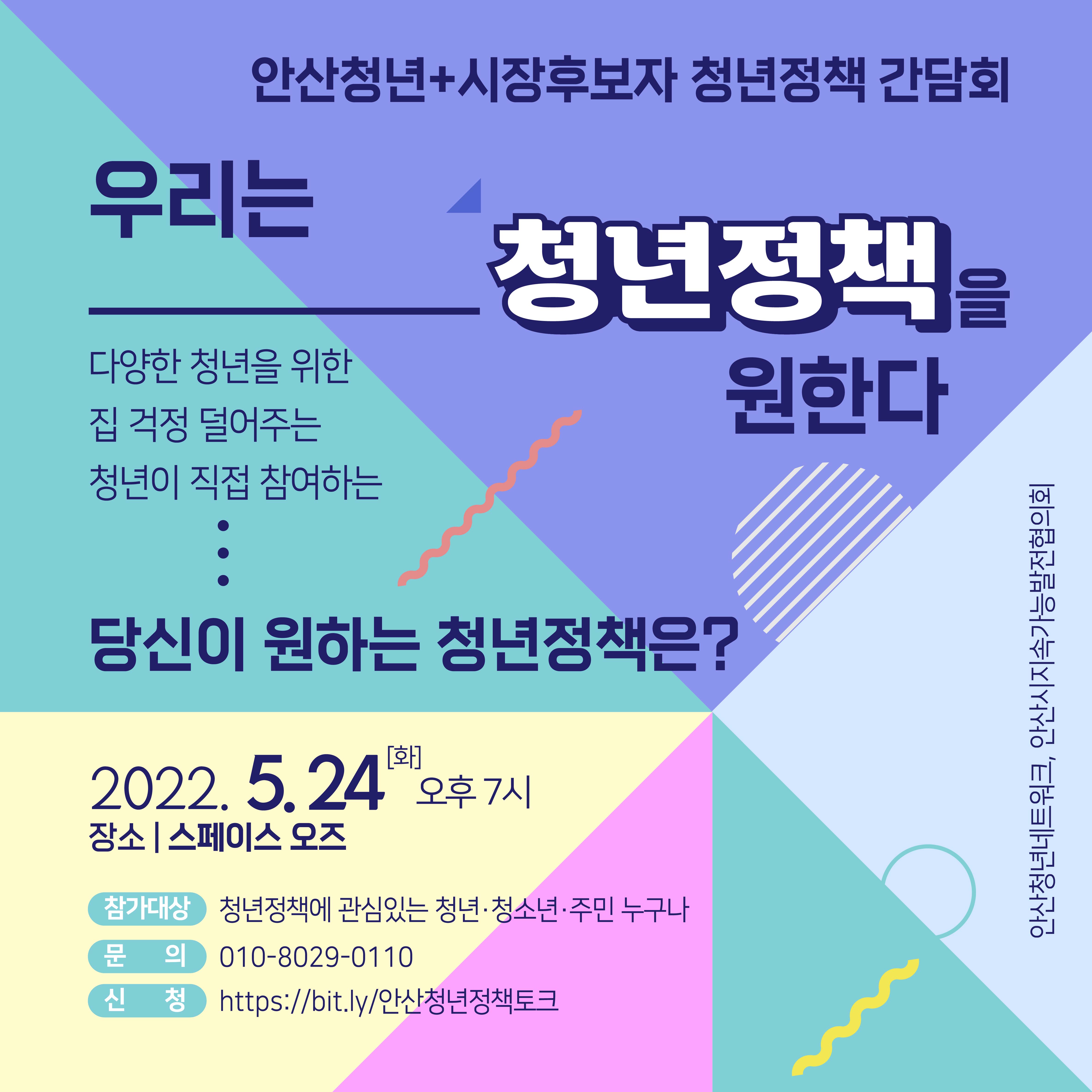 안산시장 후보자들과 만나, 우리가 원하는 청년정책을 직접 이야기하는 시간!