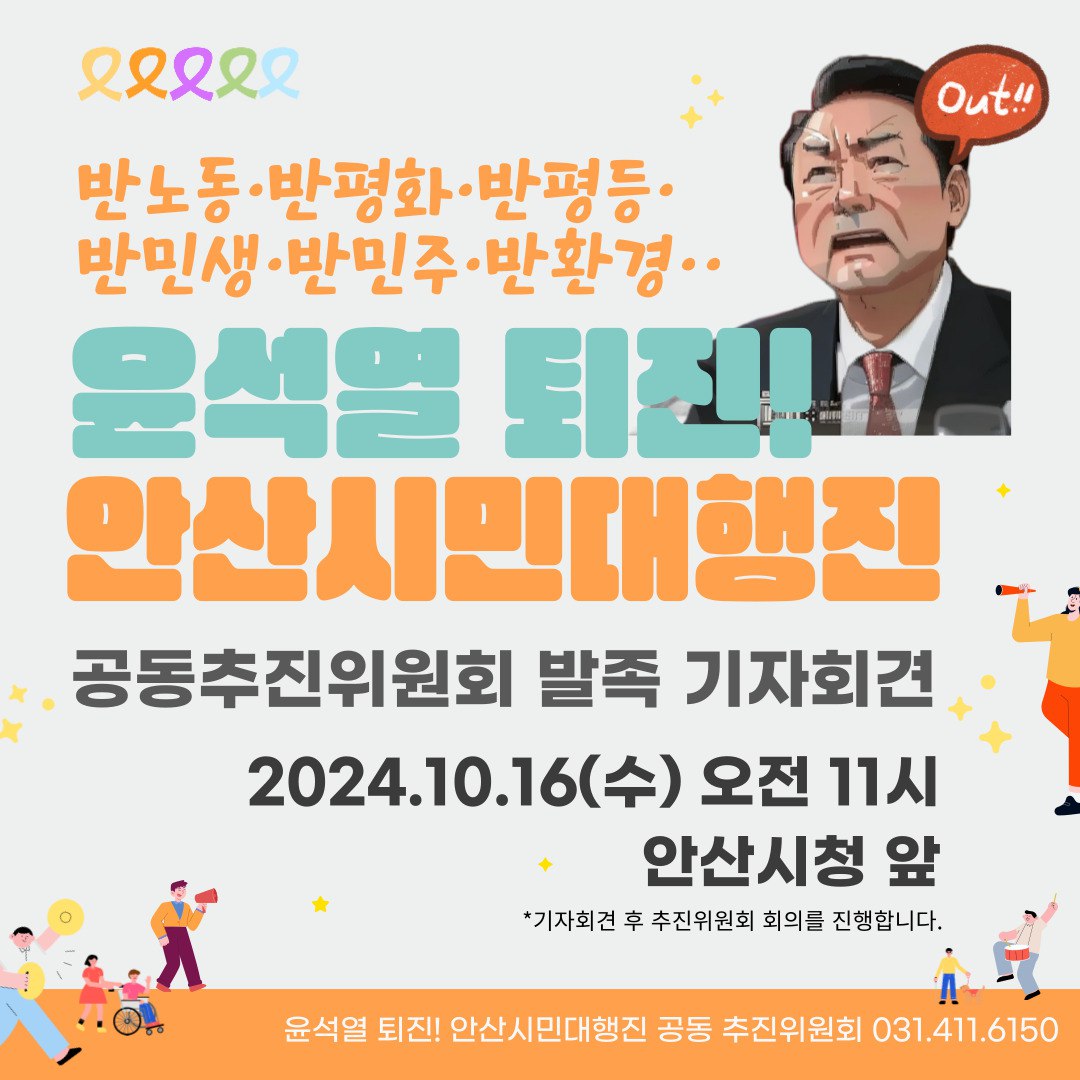 박범수 진보당 안산지역위원회 위원장은 “윤석열 정권의 지지가 20%로 바닥을 치고 있다.”며 “지난 총선에서 국민이 윤석열 정권에 경고했지만 윤석열 정권은 끝내 국민의 목소리를 듣지 않았다.”고 말했다. 또, “안보 불안, 민생경제 파탄, 김건희 여사의 국정농단 등 이대로는 못 살겠다.”고 말하고 있다며, “이제 시민들이 비감한 각오로 나서야 한다.”고 말했다. 이어 10월 30일 ‘윤석열 퇴진 안산시민대행진’에 집중해달라고 호소했다.