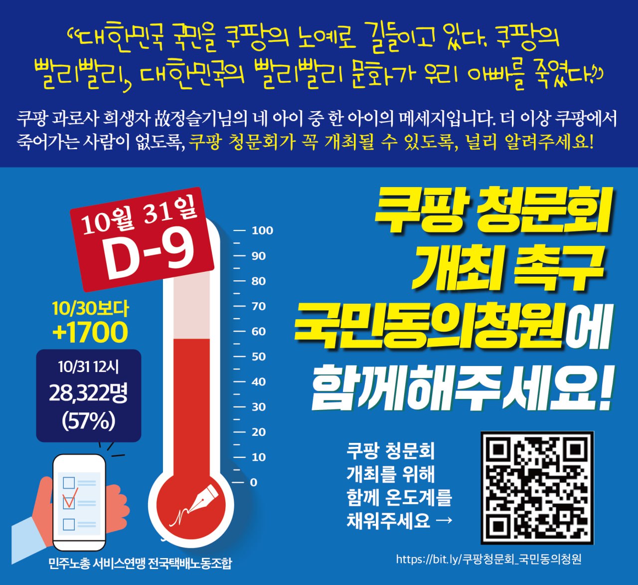 [D-9] 쿠팡 청문회 개최 촉구 국민동의청원에 함께 해주세요!