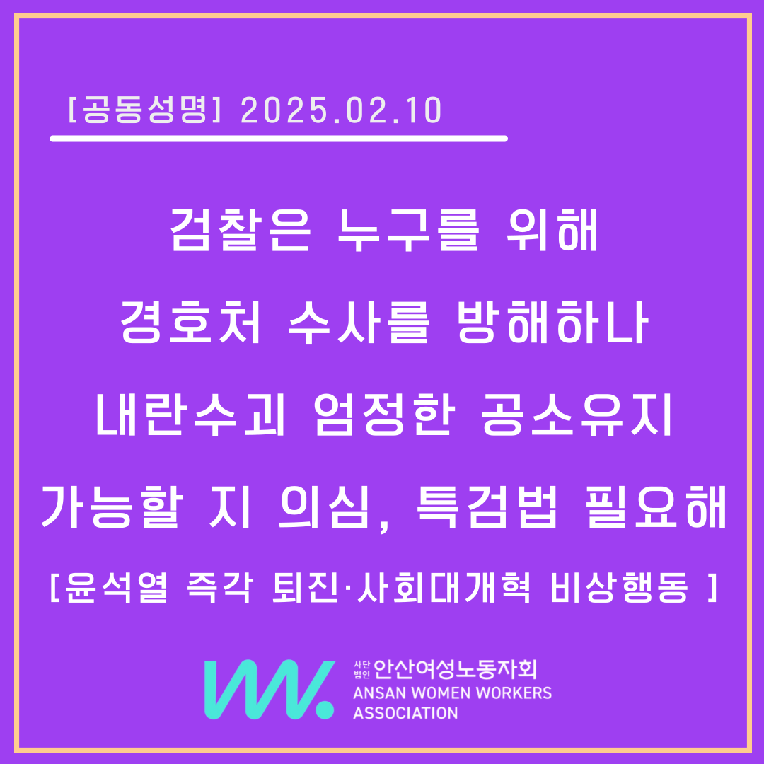 | [공동성명] 검찰은 내란수괴 윤석열 즉각 구속기소하라 (2) | 2025.01.25 |