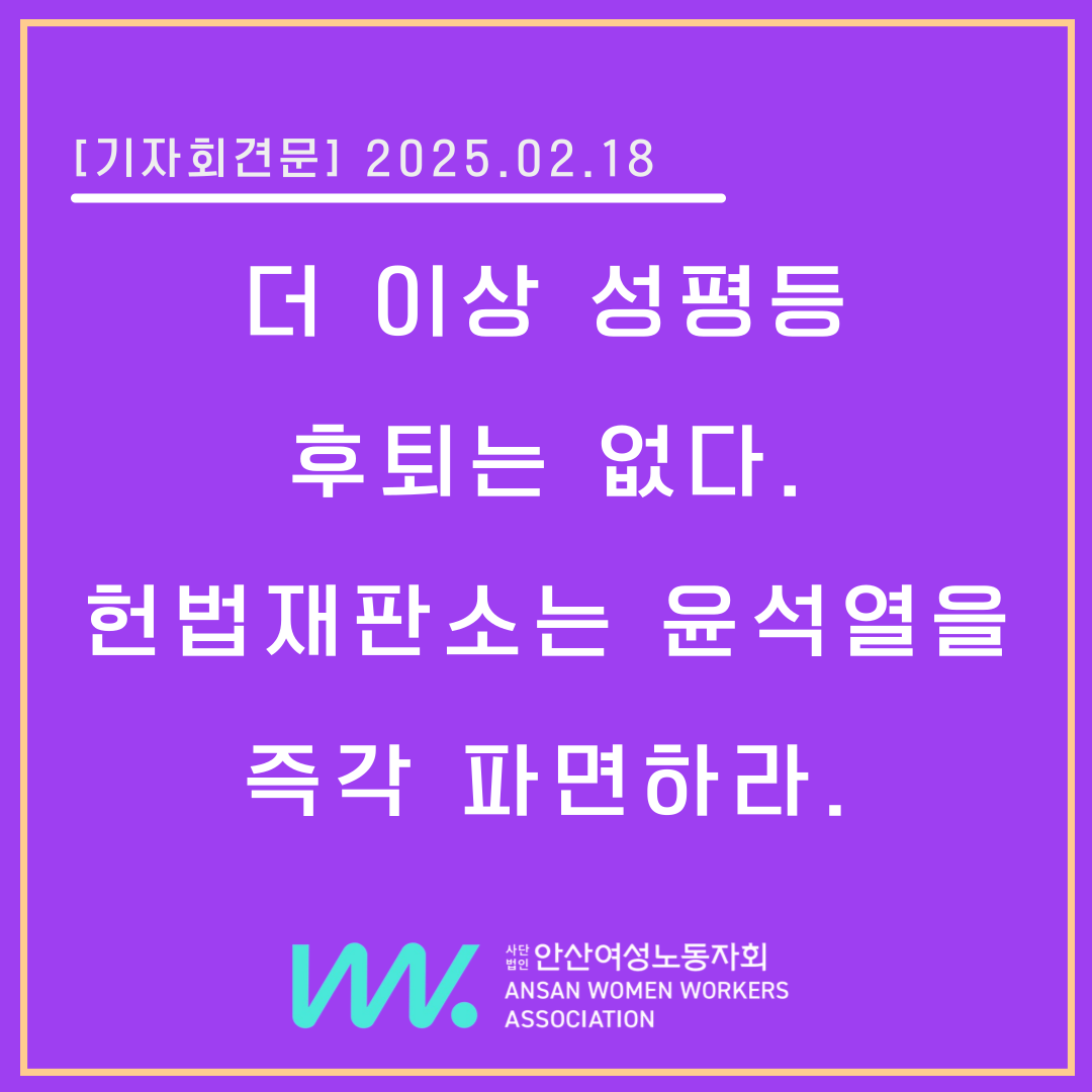 더 이상 성평등 후퇴는 없다. 성평등한 사회가 민주주의의 보루다. 헌법재판소는 윤석열을 즉각 파면하라