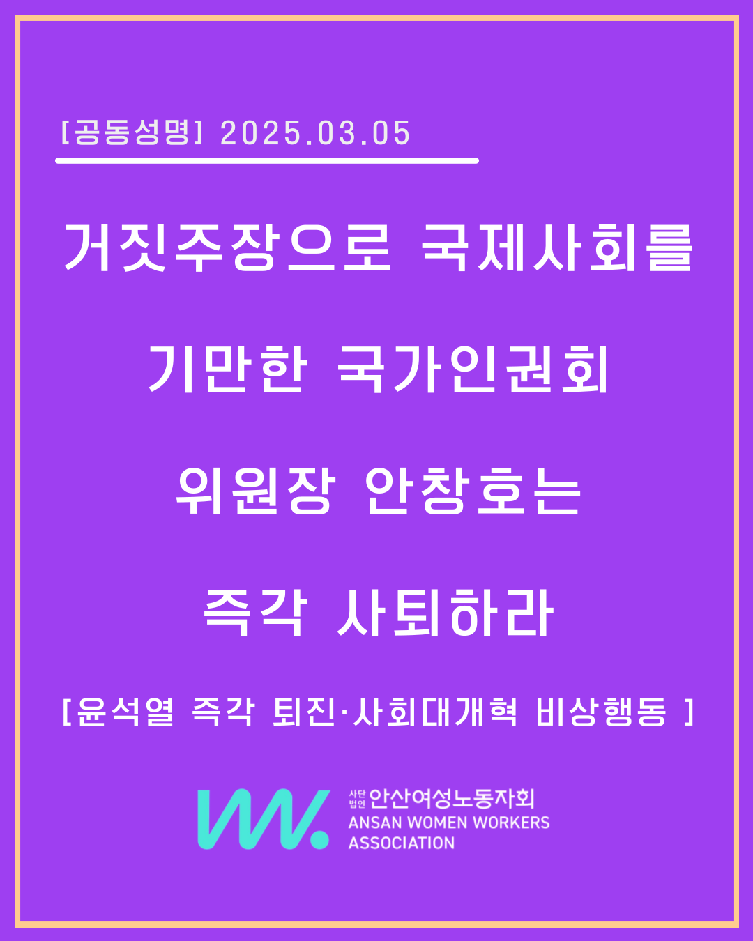 윤석열즉각퇴진·사회대개혁 비상행동은 안창호 위원장의 거짓답변을 좌시하지 않고, 앞으로도 국제사회에 정확한 정보를 전달할 것이다. 국제사회를 기만하고 국가인권위원회의 독립성을 파괴한 내란옹호자 안창호 위원장의 즉각 사퇴를 촉구한다.