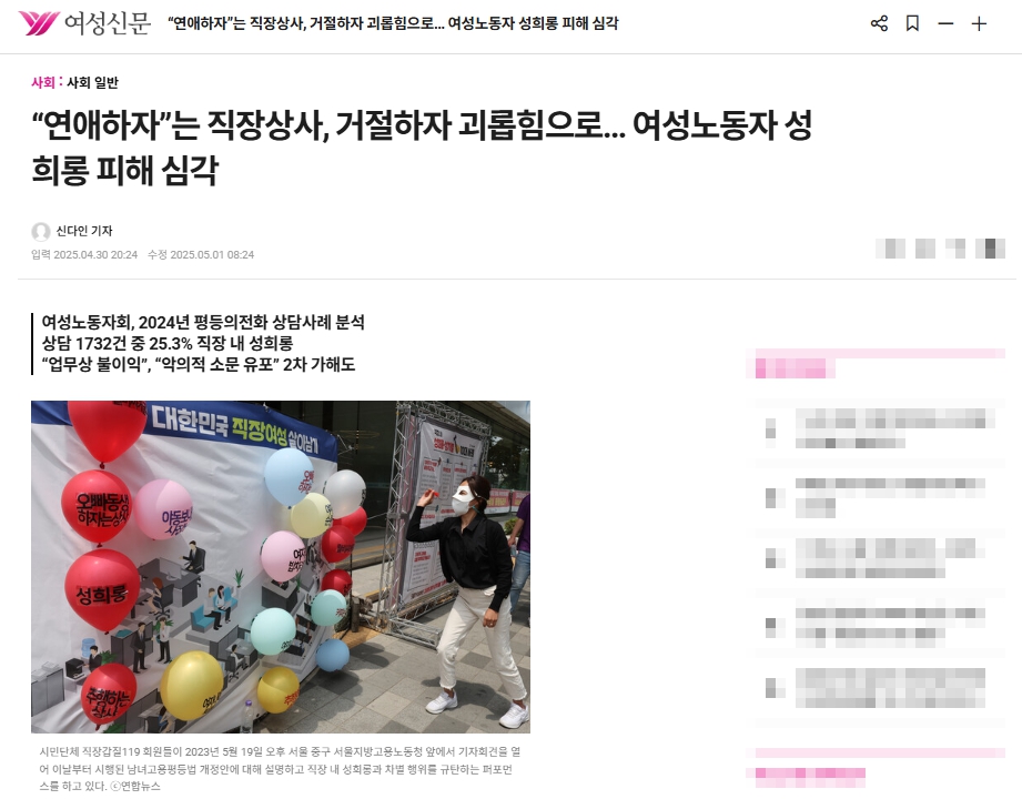 여성노동상담실<평등의전화>상담사례로 살펴본 여성노동자의 현실 [2화] 성희롱 피해자 두 번 울린 가해자의 반격, 그래도 포기하지 않았다 (2) | 2025.05.13 |
