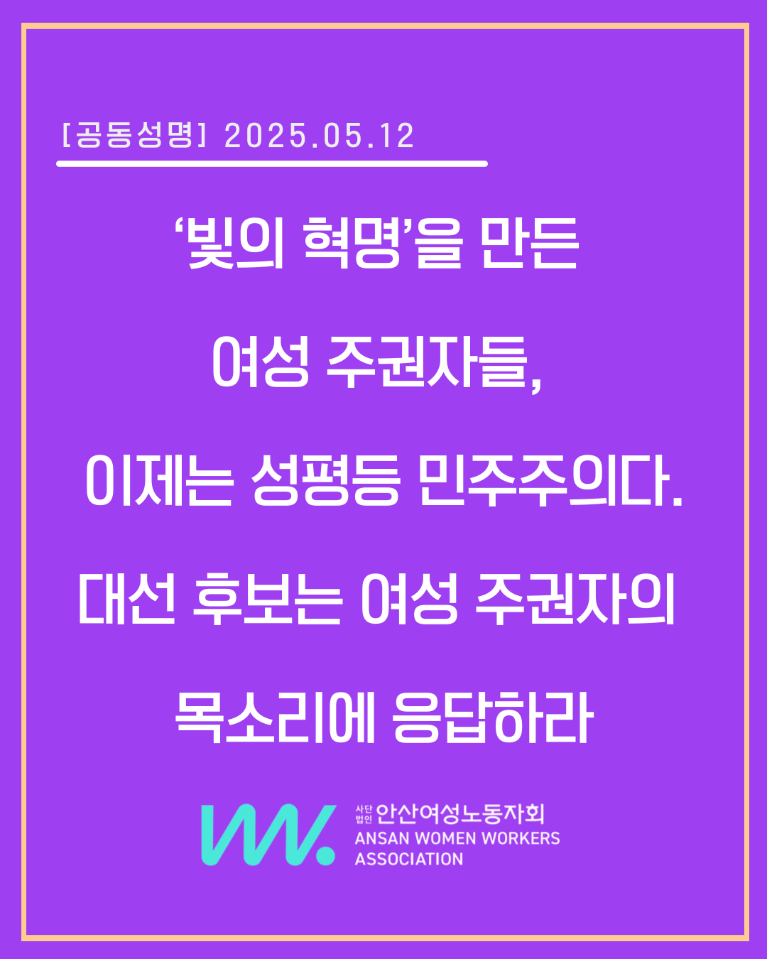 지금 이 순간에도 여성들은 일터와 가정, 거리와 광장에서 차별과 폭력에 맞서 싸우고 있다. 성평등이 실현되지 않는 한 진정한 국민통합도, 지속가능한 민주주의도 실현할 수 없다. ‘빛의 혁명’을 만든 여성 주권자의 목소리는 지금도 광장과 일상 곳곳에서 성평등 사회와 성평등 민주주의 실현을 외치고 있다.