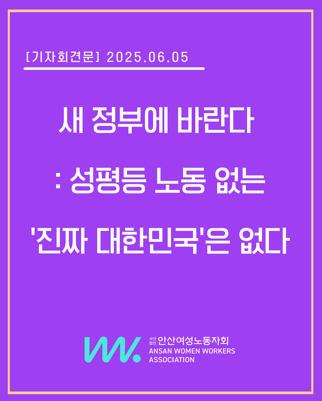 이것은 대한민국 모든 시민의 준엄한 명령이다. 성평등 노동 없는 ‘진짜 대한민국’은 없다. 새 정부는 지금 당장, 성평등 노동 실현하라.