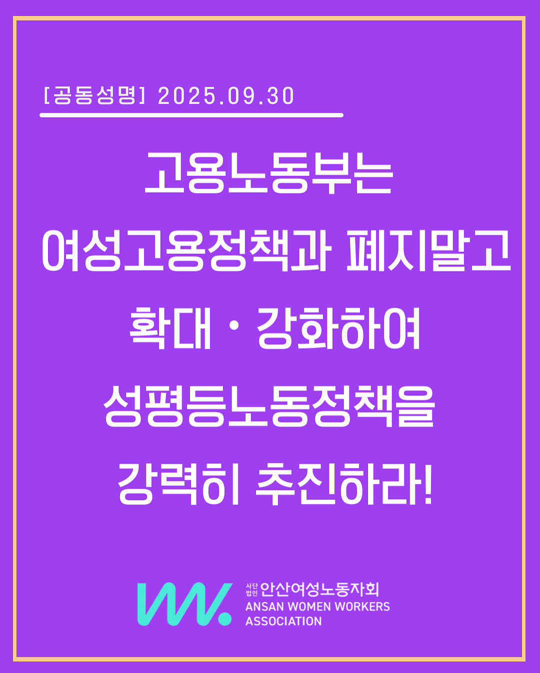 [공동성명] 고용노동부는 여성고용정책과 폐지말고 확대・강화하여 성평등노동정책을 강력히 추진하라!