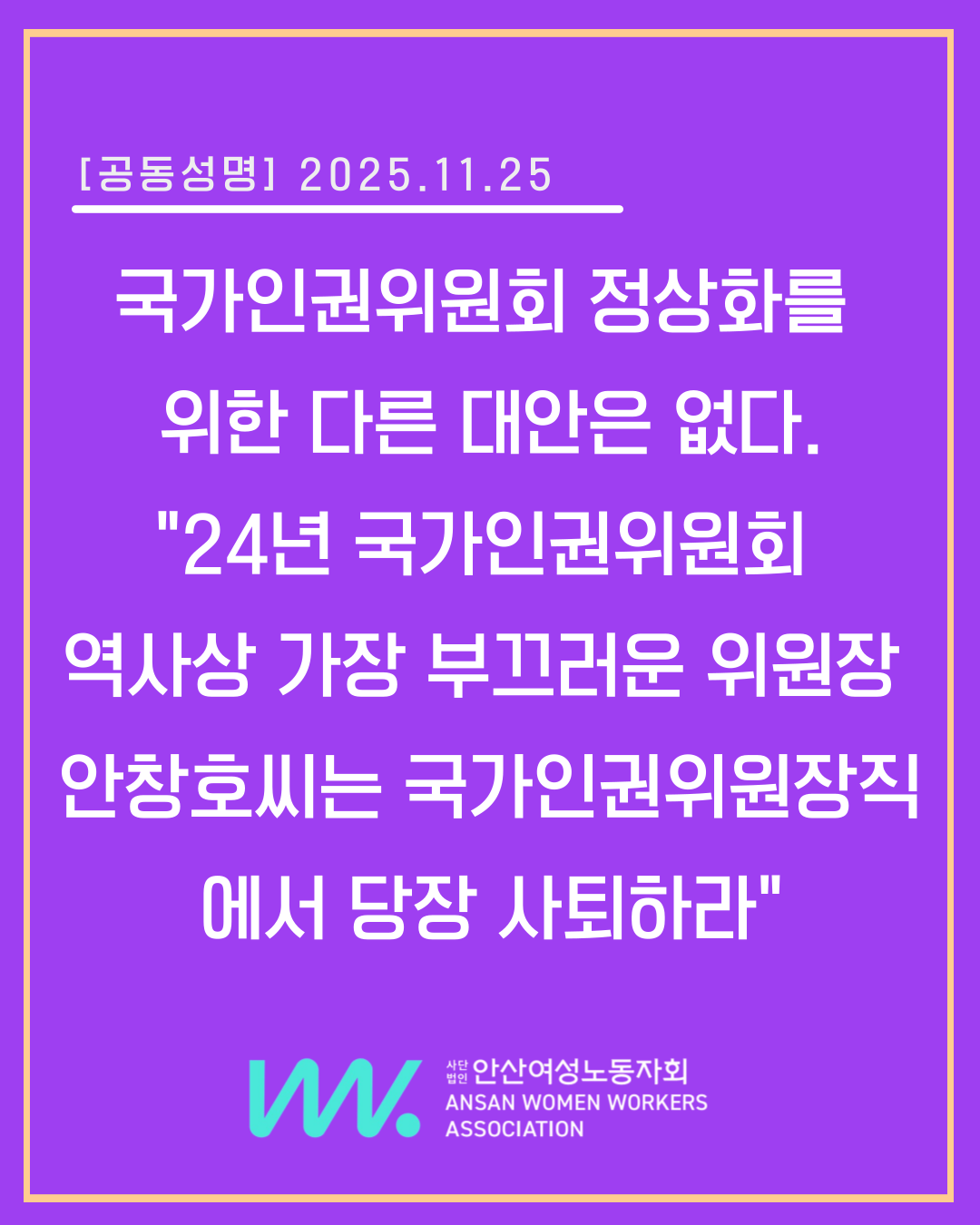 오직 시민의 권리를 옹호하기 위해 설립된 국가인권위원회가 설립 24년이 지난 지금에는 온 국민의 인권을 침해한 비상계엄 내란을 비호하고 존재의 근간인 독립성을 스스로 훼손하며 대한민국의 인권을 퇴행시키고 있기 때문이다. 이 모든 책임은 국가인권위원장이라는 직함을 가지고 있는 안창호씨에게 있다.