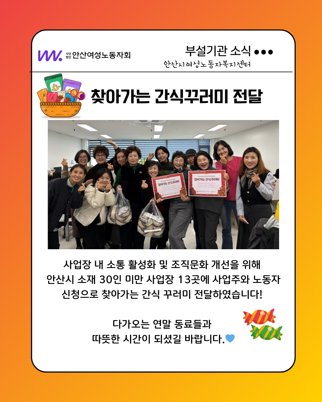 소규모 사업장을 찾아가는 간식꾸러미 전달 등 지역과 함께하는 따뜻한 활동도 이어졌습니다.