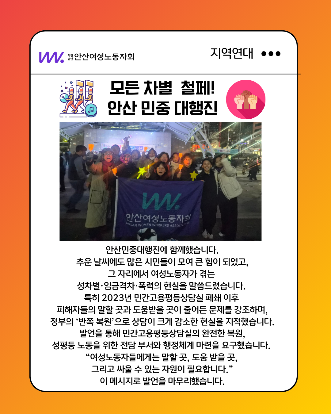 #안산여노 #11월활동소식 #여성노동 #성평등노동 #페미니즘 #안산 #지역연대 #회원모임 #민중대행진 #평등의전화 #여성정치 #페미글방 #뚜뚜모임 #국수나무무료나눔